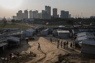 A migration worker settlement, whose inhabitants mostly work on construction sites, on…