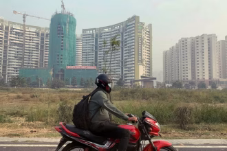 On the highway to Greater Noida, a sprawling extension of India’s capital…