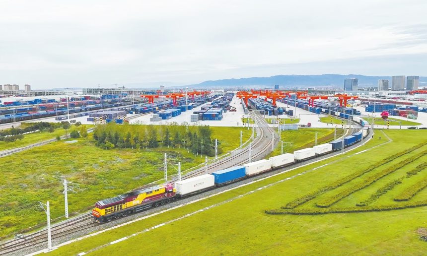 The X9043 China-Europe freight train departs from Xi’an city, Northwest China’s Shaanxi Province on November 17, 2025. Photo: VCG