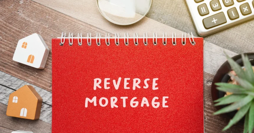 Reverse mortgage concept. Type of loan available to homeowners aged 62 or older, allowing them to convert part of the equity in their home into cash. Business and finance. Notes, inscription, houses